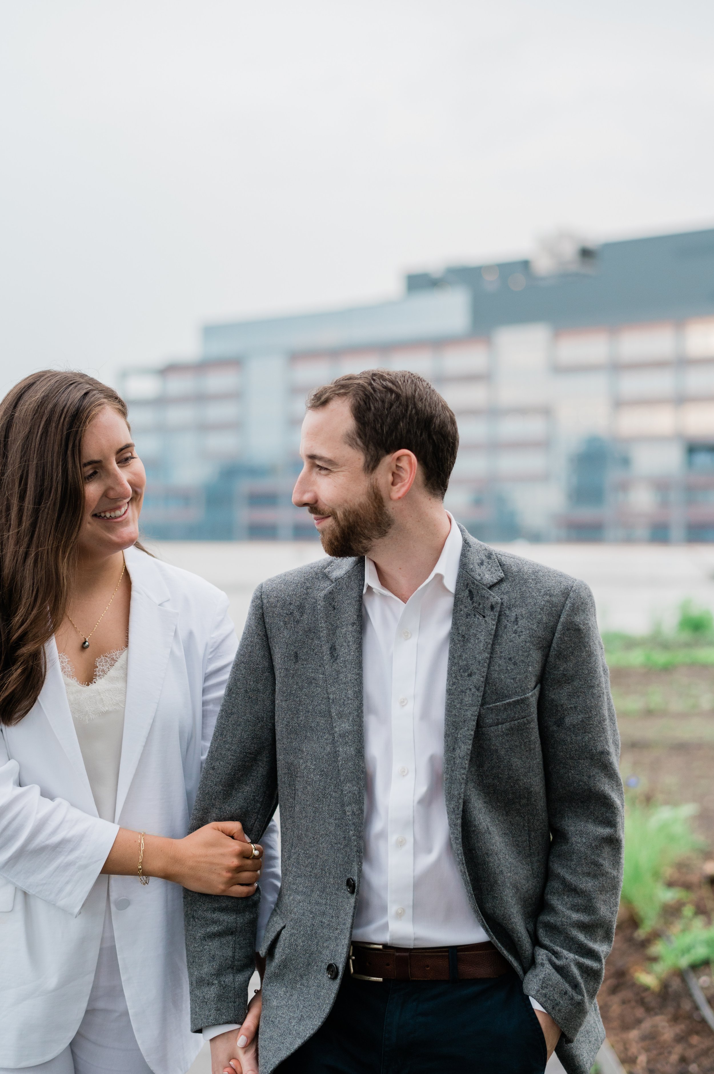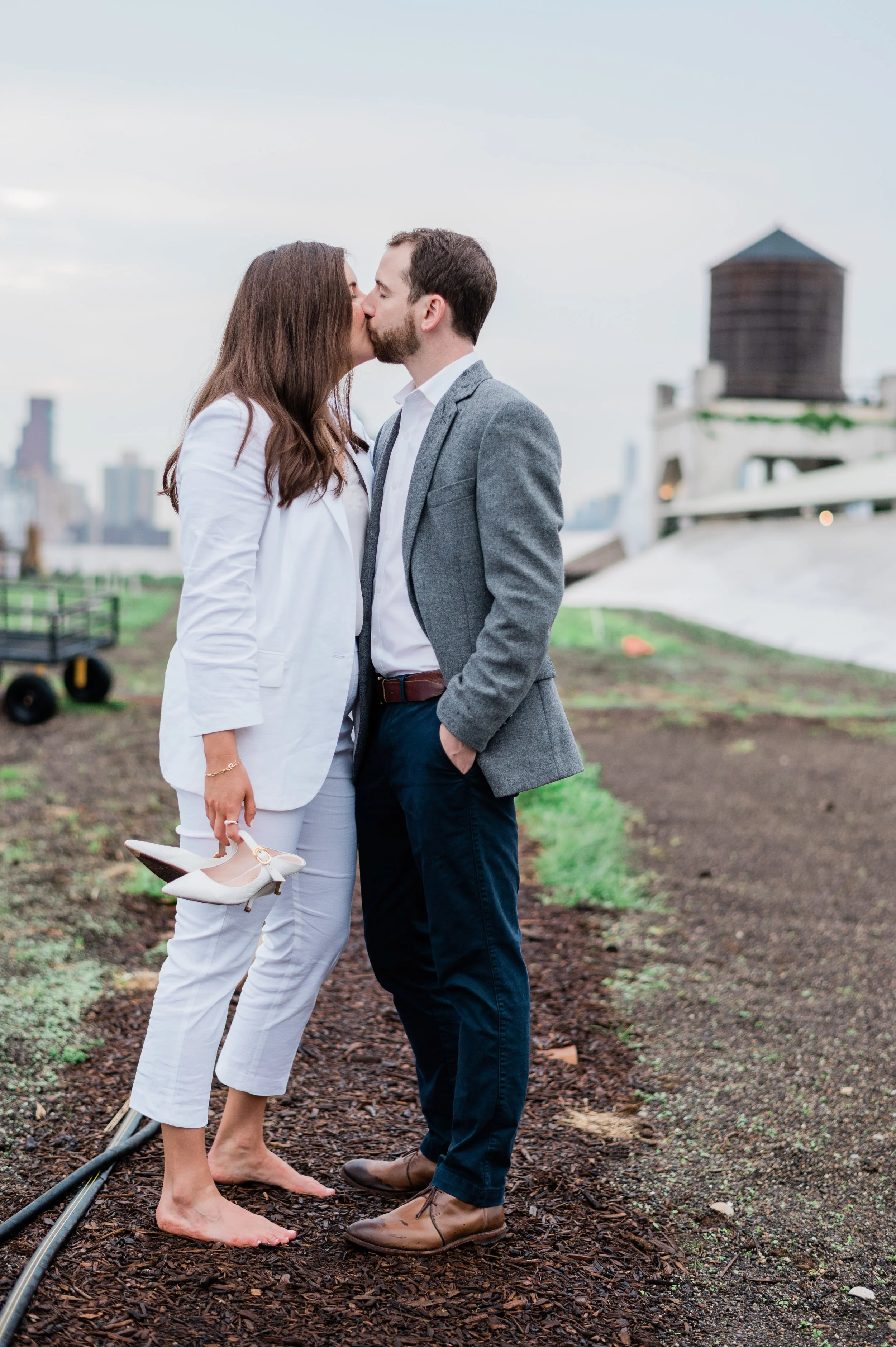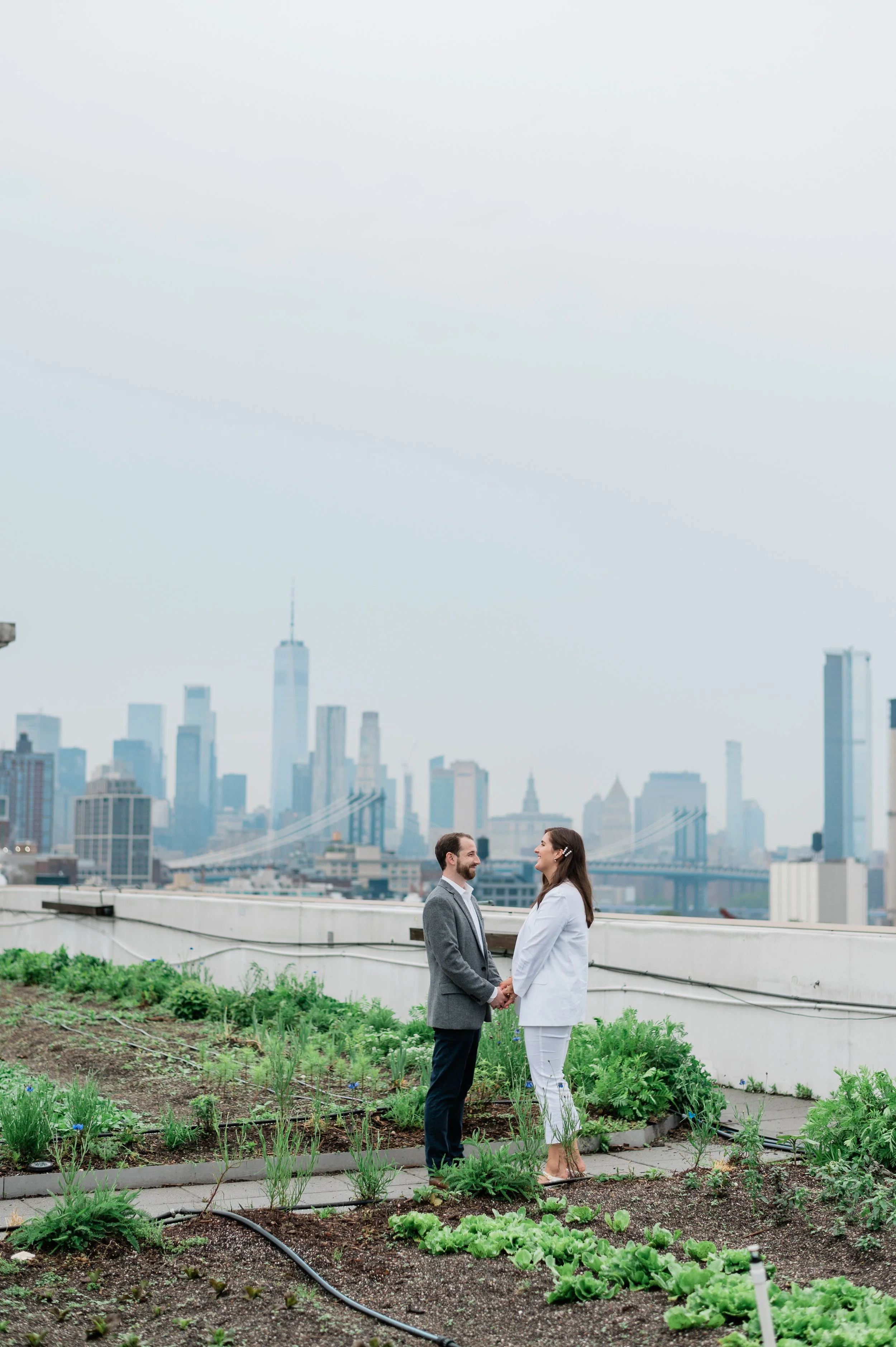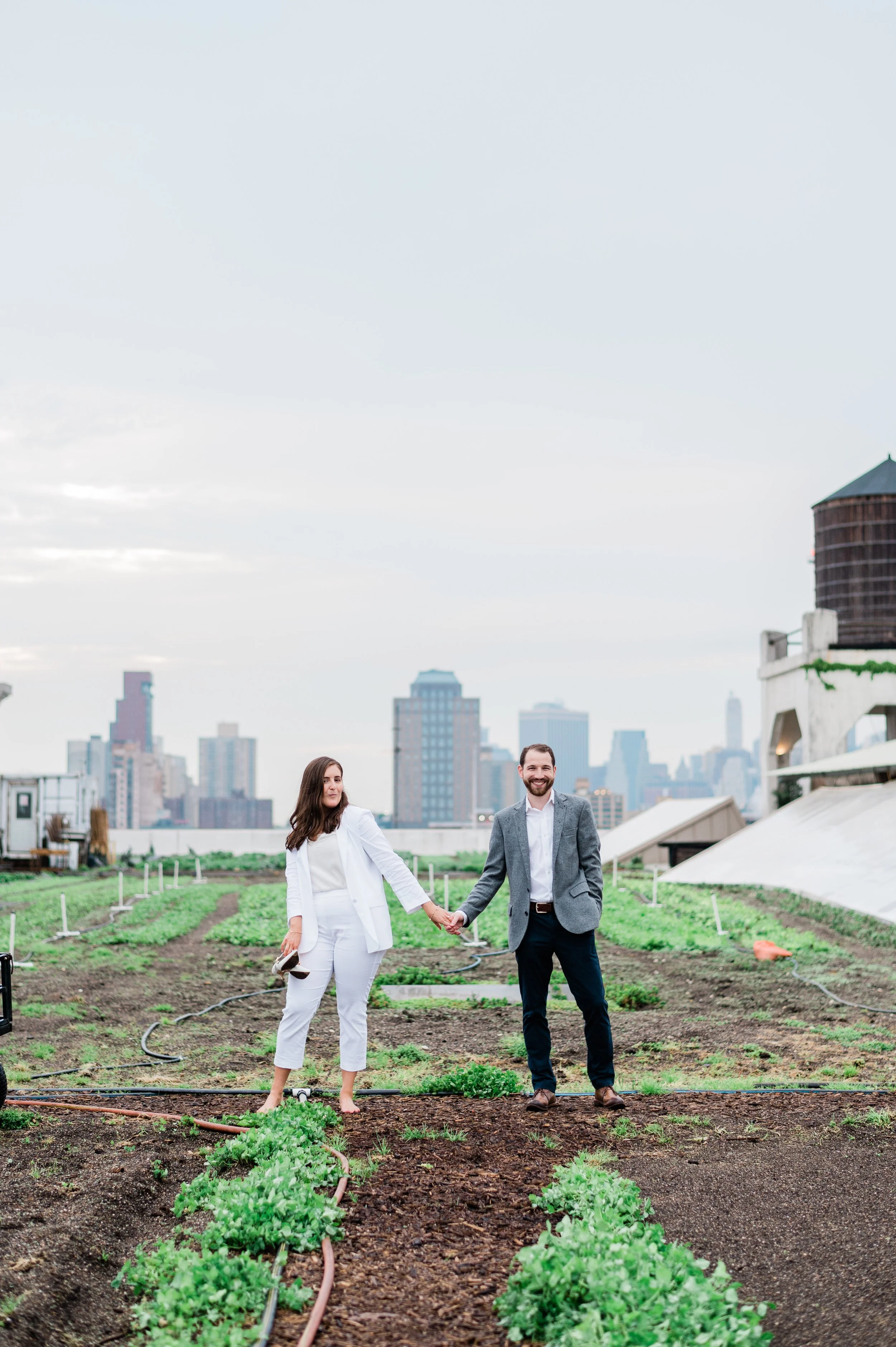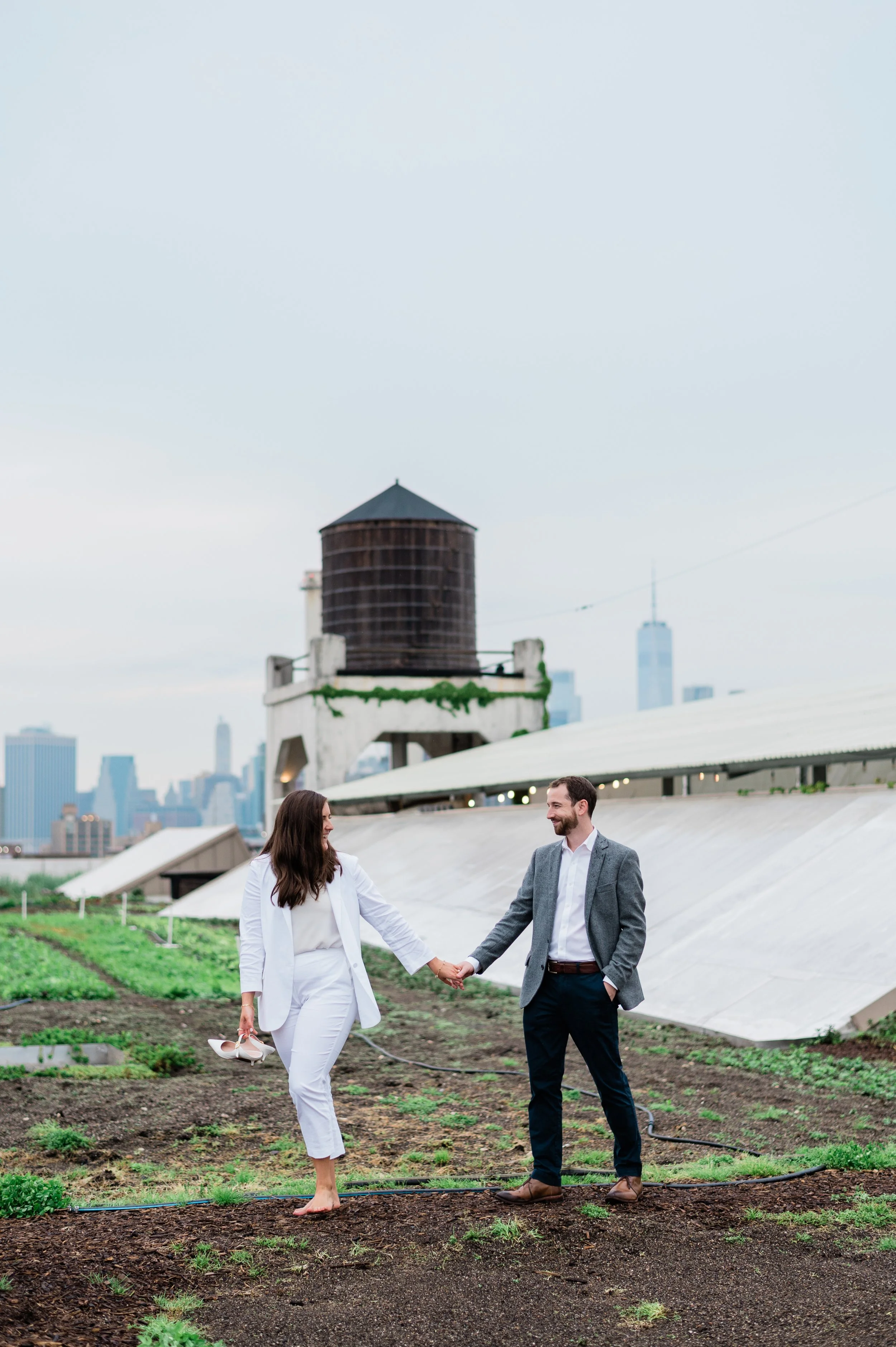 Gina and Joe kickstarted their wedding weekend on a rooftop of an urban farm in Brooklyn at Brooklyn Grange. This space is incredible! ‘Founded in 2010, it is the leading rooftop farming and intensive green roofing business in the US, operating the world’s largest rooftop soil farms and located in NYC. It promotes sustainable urban living by building green spaces, hosting educational programs, and increasing access to locally grown produce in the city’s communities.’